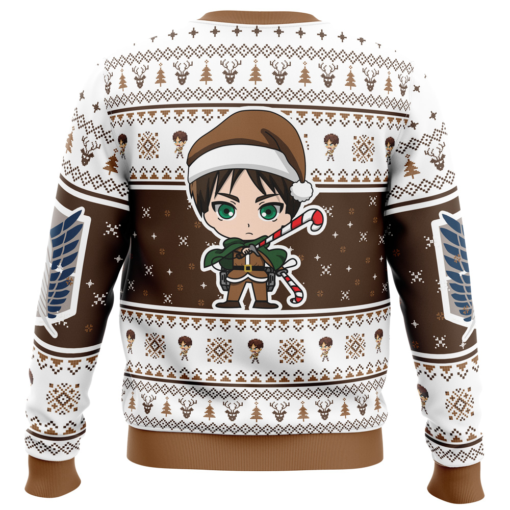 Buildercar – Christmas Chibi Eren Attack on Titan Ugly Christmas Sweater Turn Heads This Holiday with Anime Ape’s Exclusive Ugly Christmas Sweater
