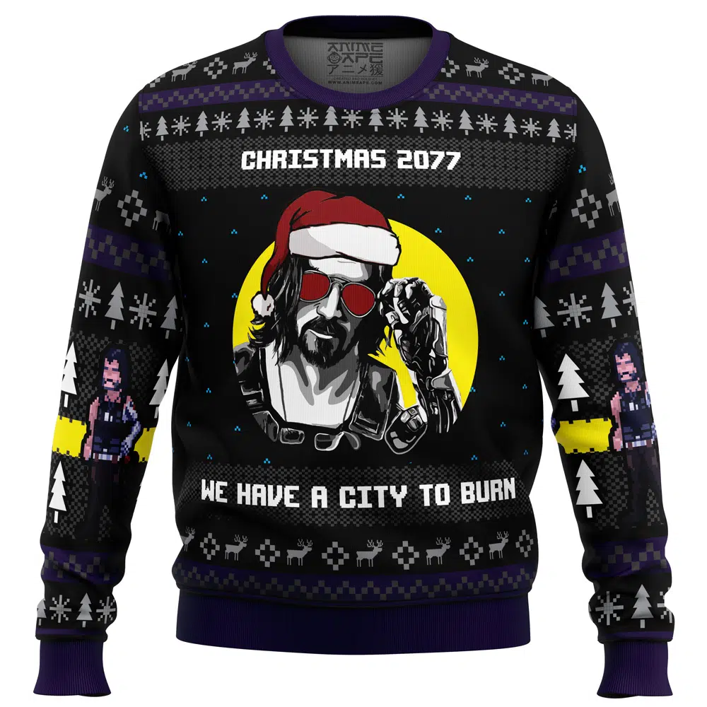 Buildercar – Christmas Cyberpunk 2077 Ugly Christmas Sweater Turn Heads This Holiday with Anime Ape’s Exclusive Ugly Christmas Sweater
