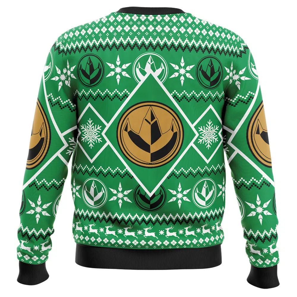Buildercar – Christmas Green Ranger Power Rangers Ugly Christmas Sweater Turn Heads This Holiday with Anime Ape’s Exclusive Ugly Christmas Sweater