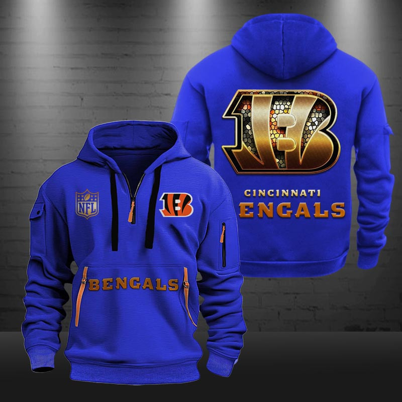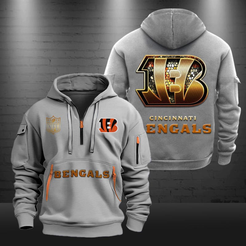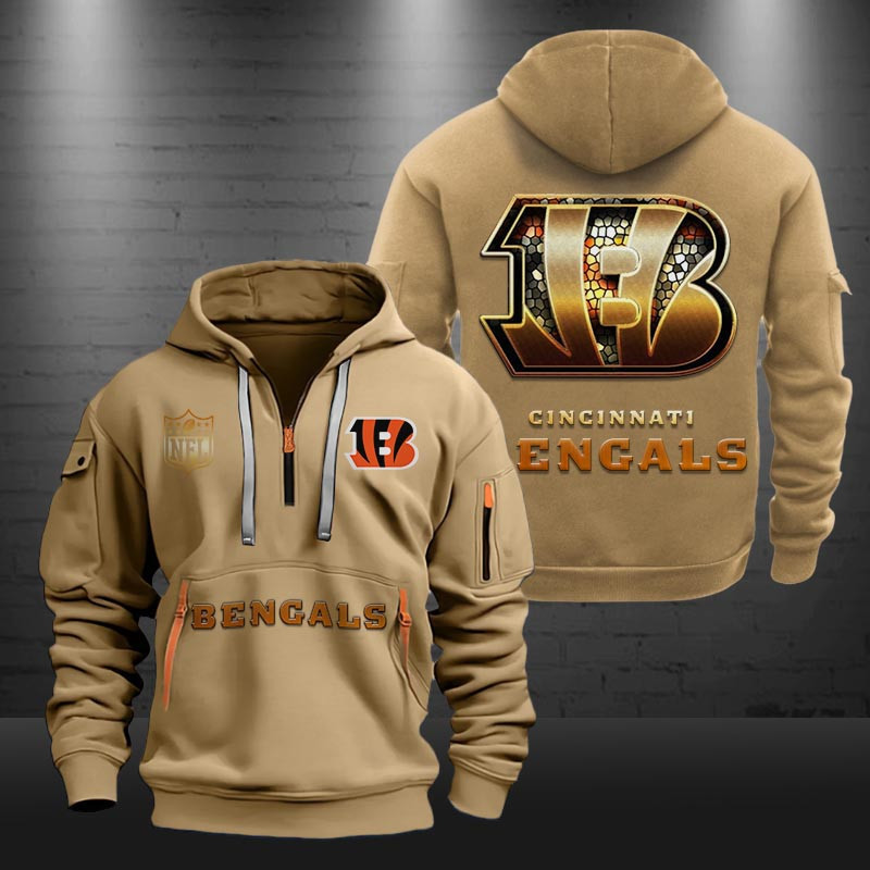 Cincinnati Bengals Golden Logo NFL Quarter Zip Hoodie