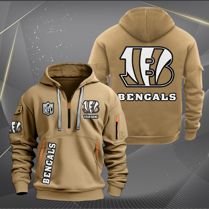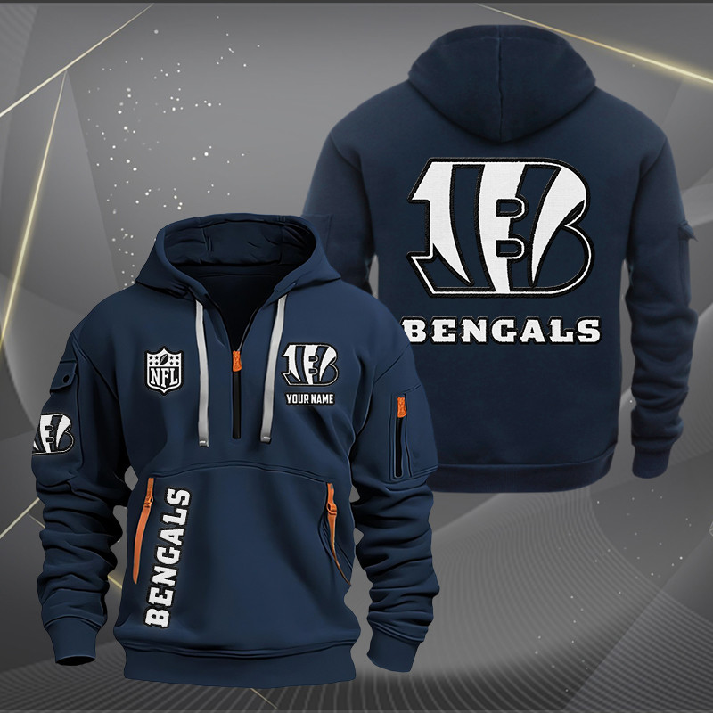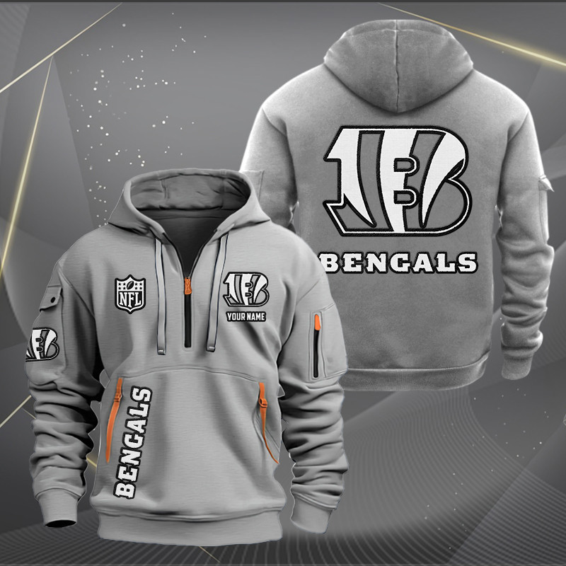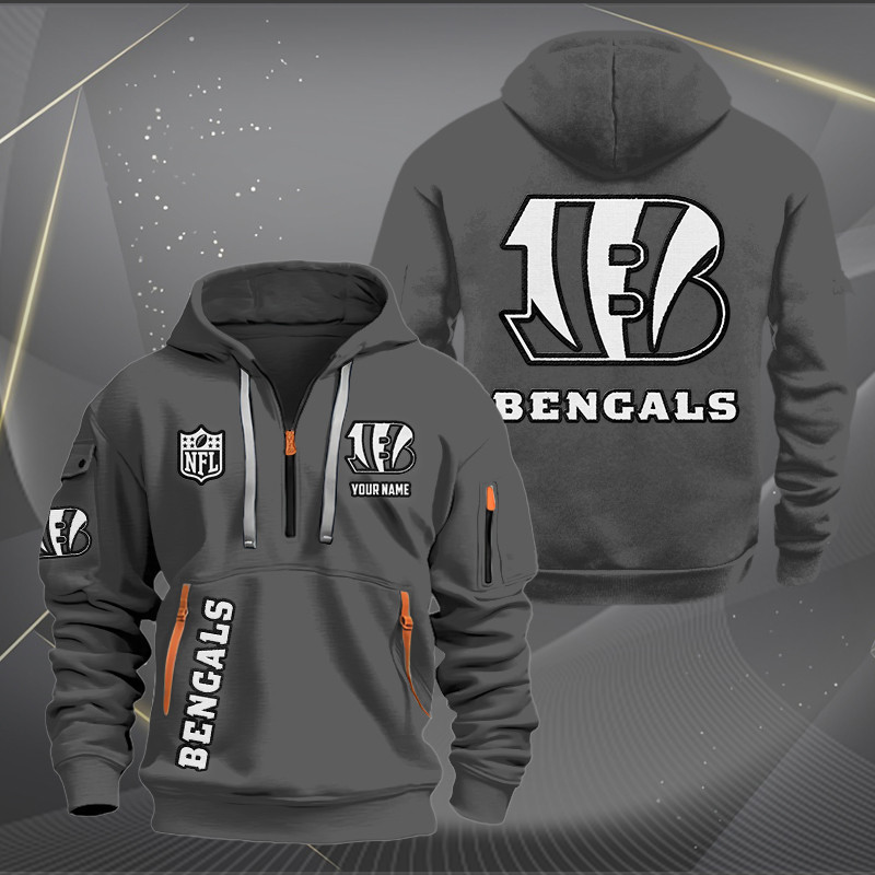 Cincinnati Bengals White Logo NFL Quarter Zip Hoodie