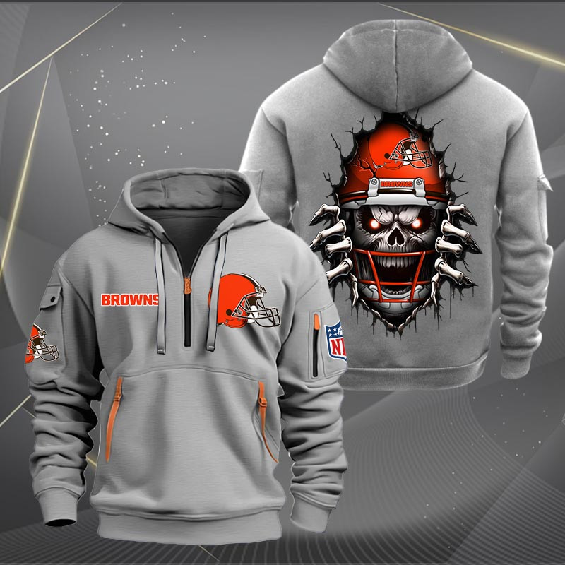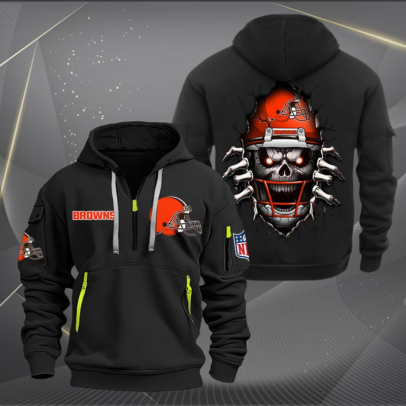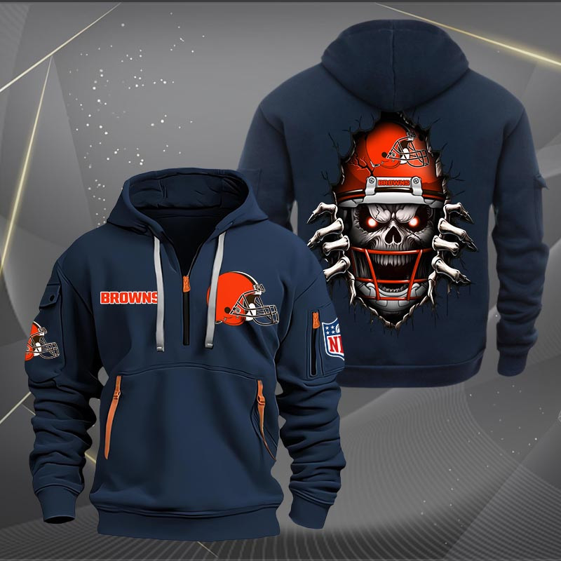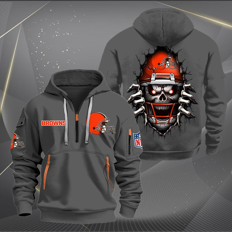 Cleveland Browns Football Player Skull Quarter Zip Hoodie