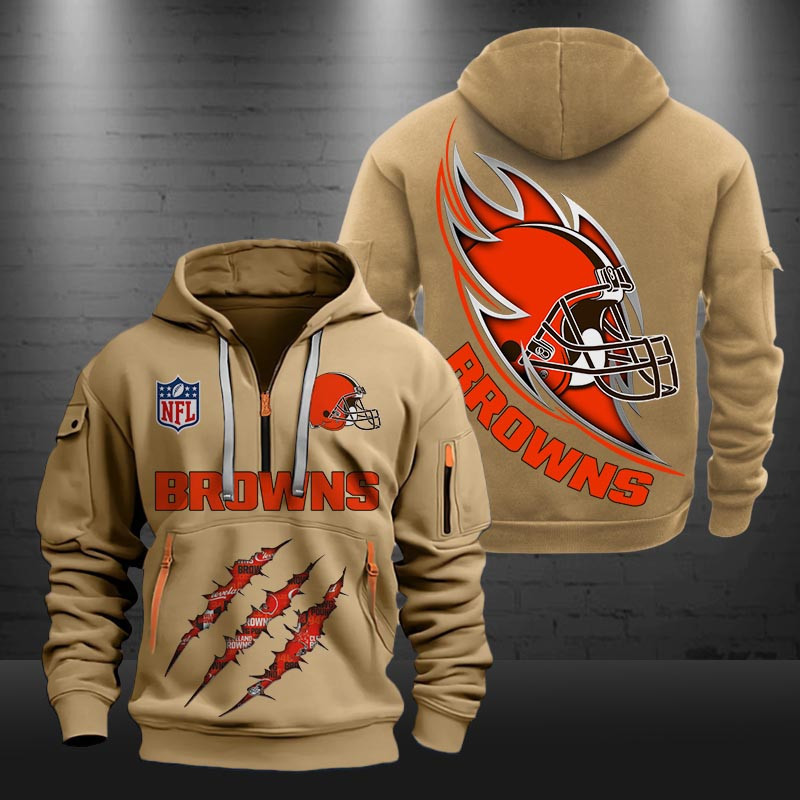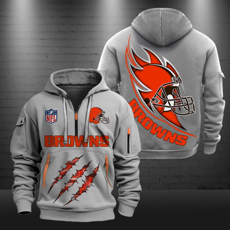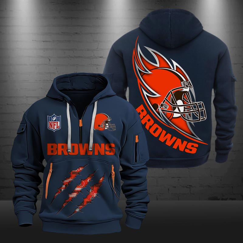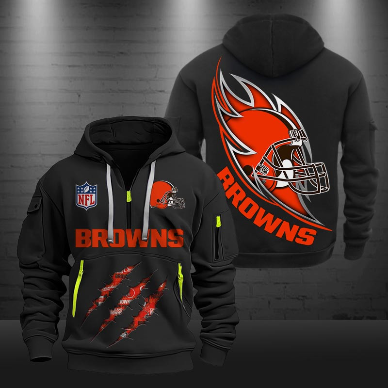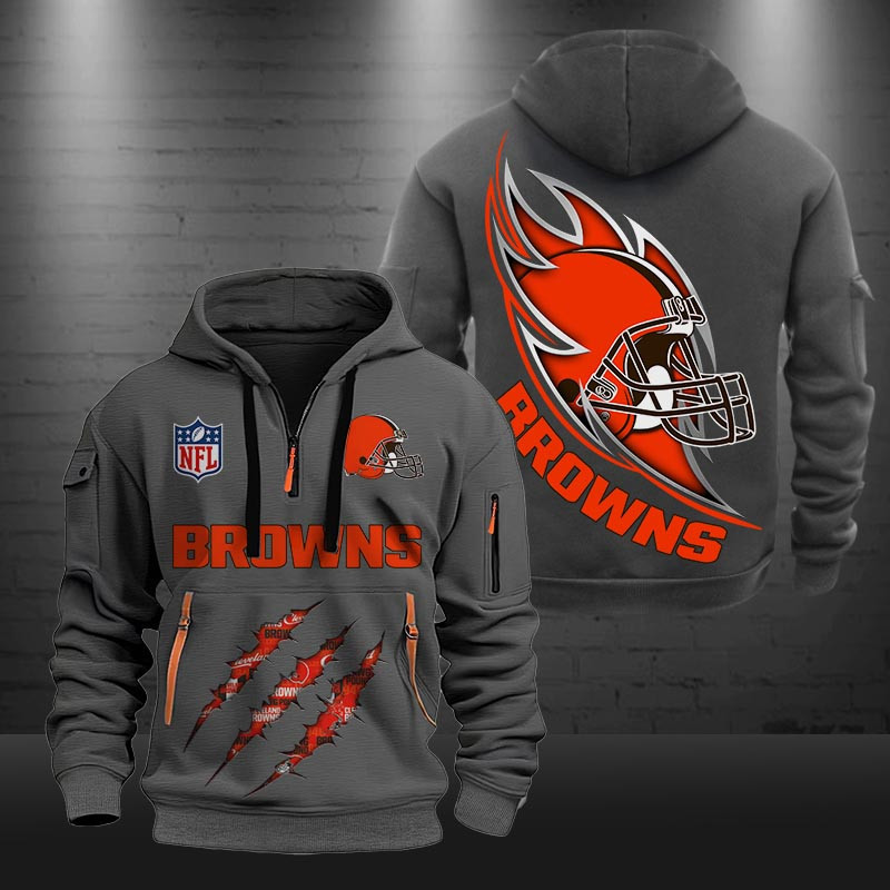 Cleveland Browns Monster Scratch Logo NFL Quarter Zip Hoodie