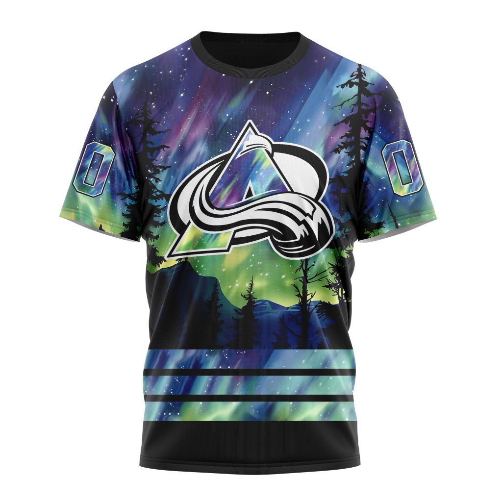 Colorado Avalanche With Northern Lights 01 Personalized Name And Number T-Shirt