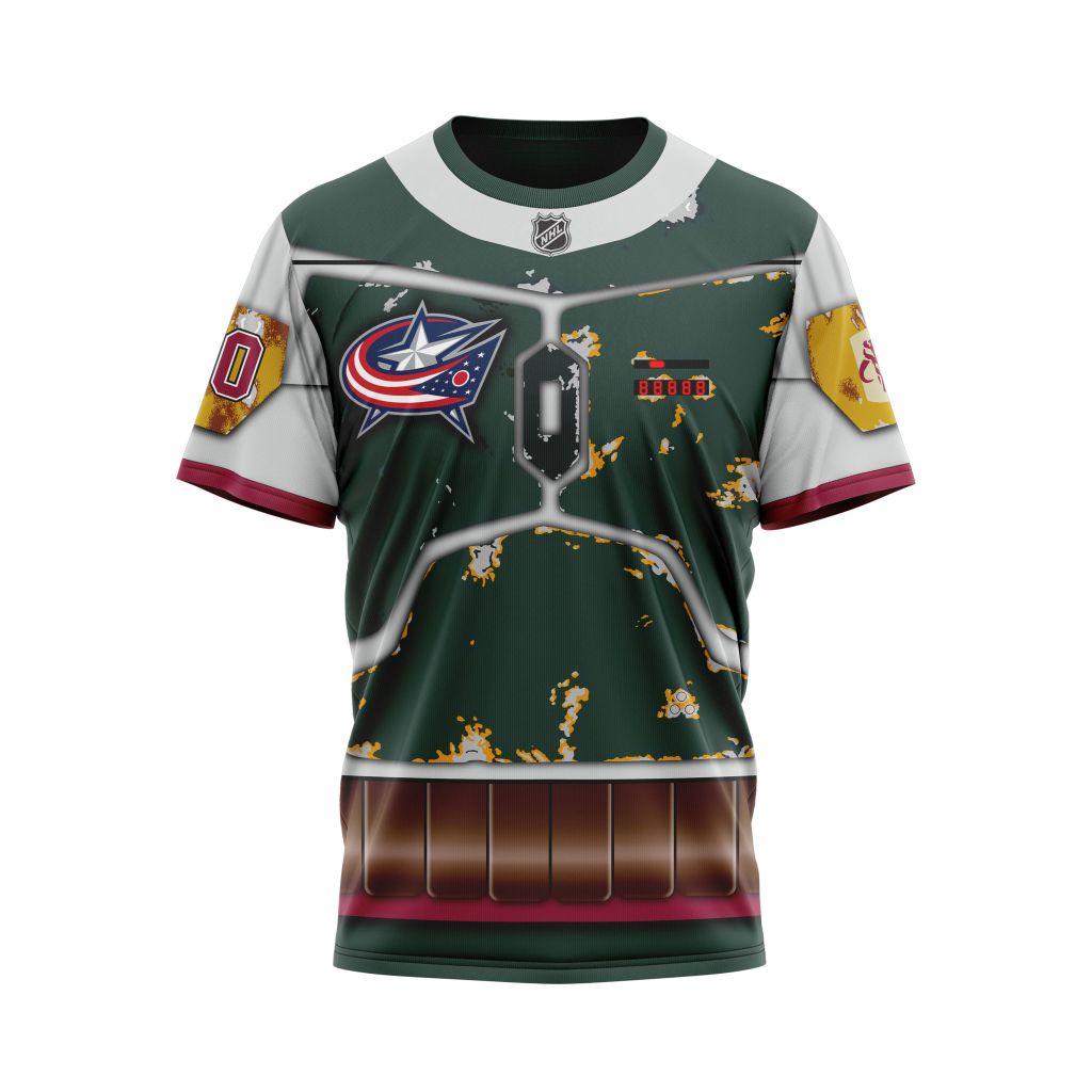 Columbus Blue Jackets feat Boba Fett’s Armor Design For Star Wars Fourth Of July Personalized Name And Number T-Shirt