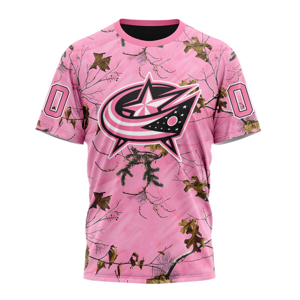 Columbus Blue Jackets Special Realtree Pink Camouflage Design 01 Personalized Name And Number T-Shirt