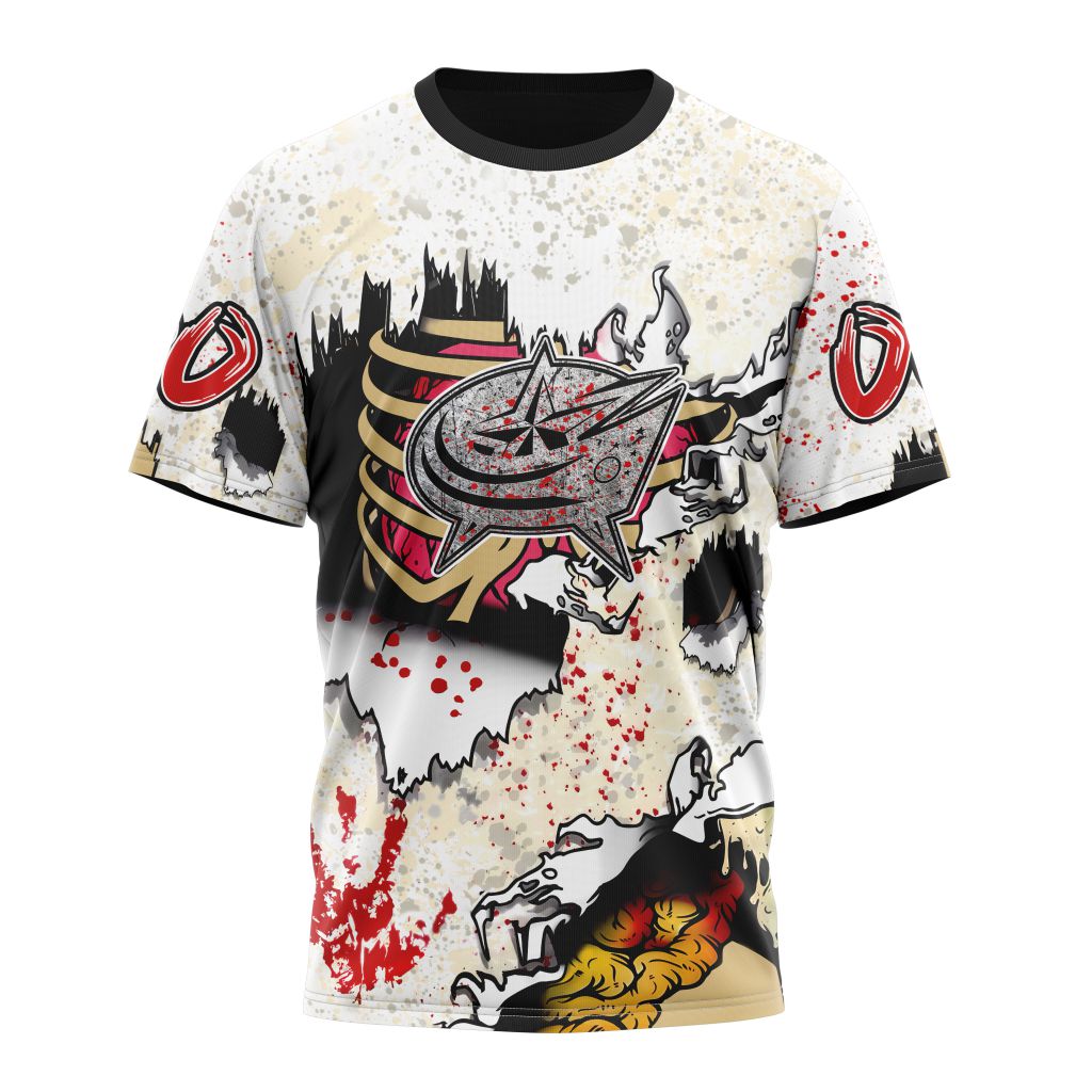 Columbus Blue Jackets Special Zombie Style For Halloween Personalized Name And Number T-Shirt