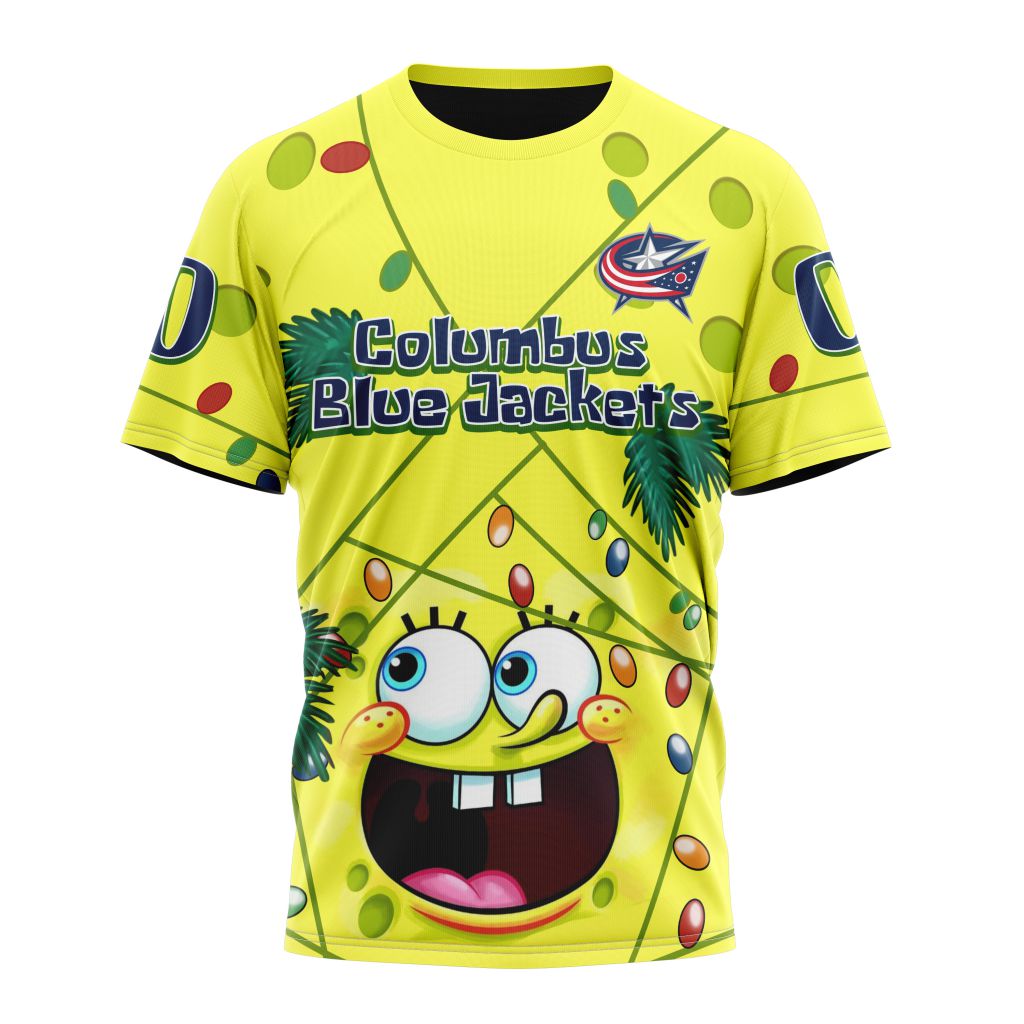 Columbus Blue Jackets With SpongeBob Personalized Name And Number T-Shirt