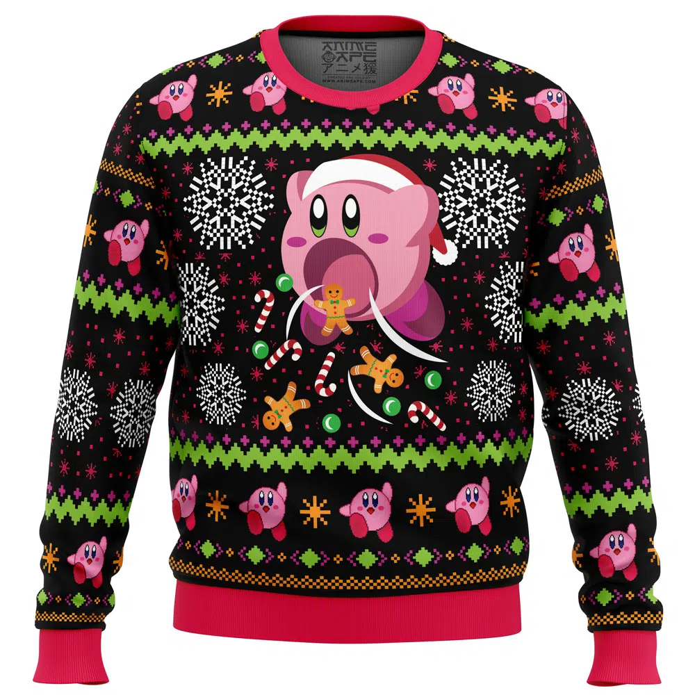 Buildercar – Cute Pink Hungry Kirby’s Dream Land Ugly Christmas Sweater Turn Heads This Holiday with Anime Ape’s Exclusive Ugly Christmas Sweater