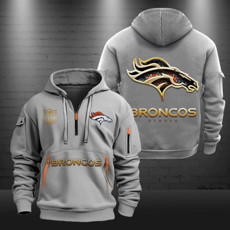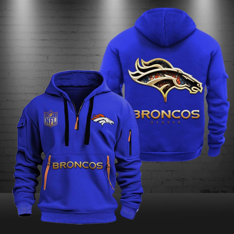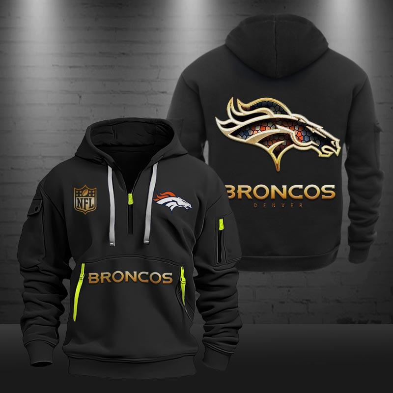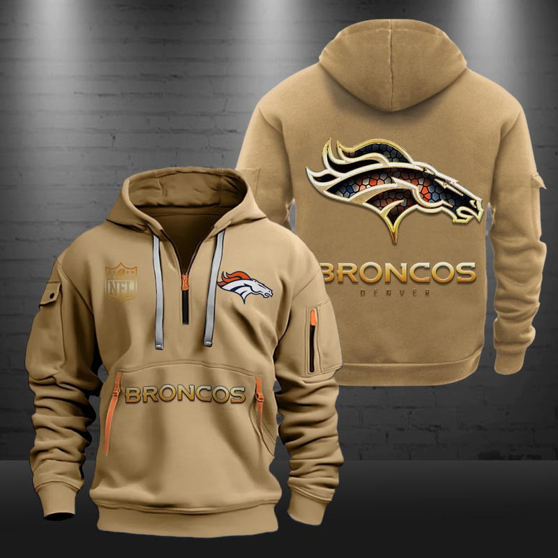 Denver Broncos Golden Logo NFL Quarter Zip Hoodie