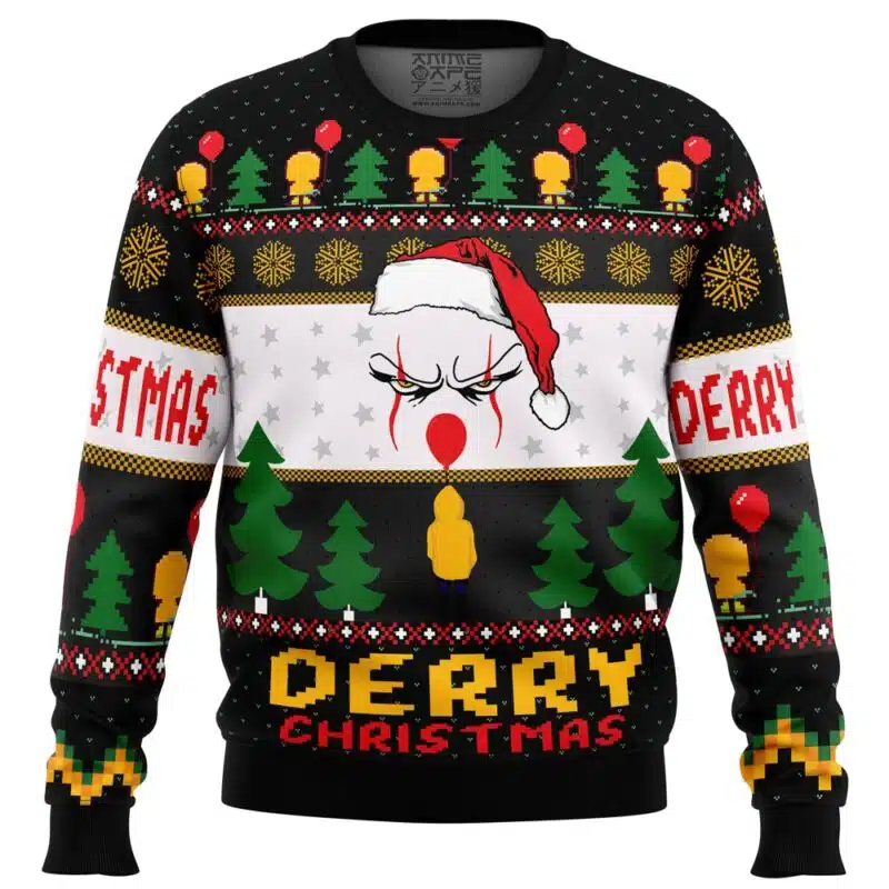 Buildercar – Derry Pennywise Christmas Ugly Christmas Sweater Turn Heads This Holiday with Anime Ape’s Exclusive Ugly Christmas Sweater