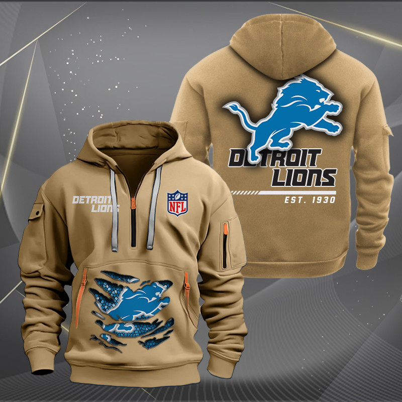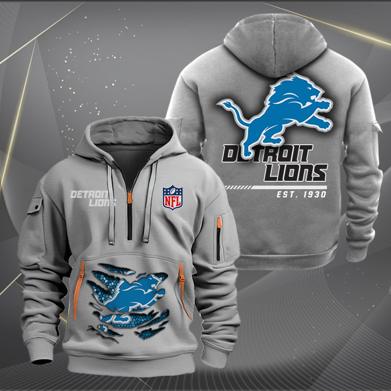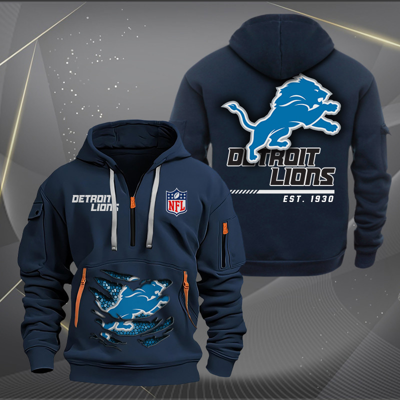 Detroit Lions Monster Scratch 2 Logo NFL Quarter Zip Hoodie