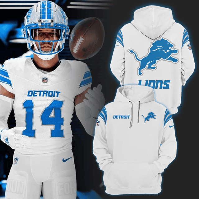 Detroit Lions White NFL 3D Hoodie