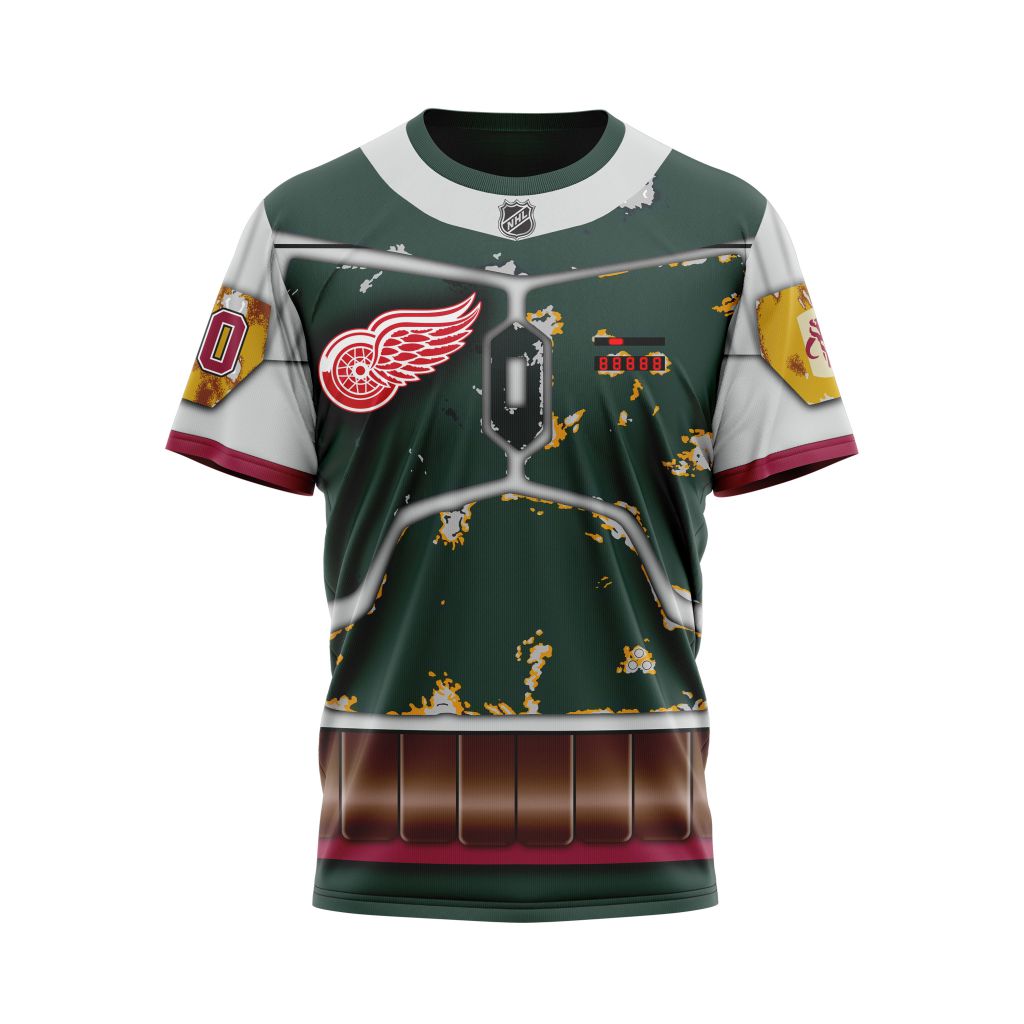 Detroit Red Wings feat Boba Fett’s Armor Design For Star Wars Fourth Of July Personalized Name And Number T-Shirt