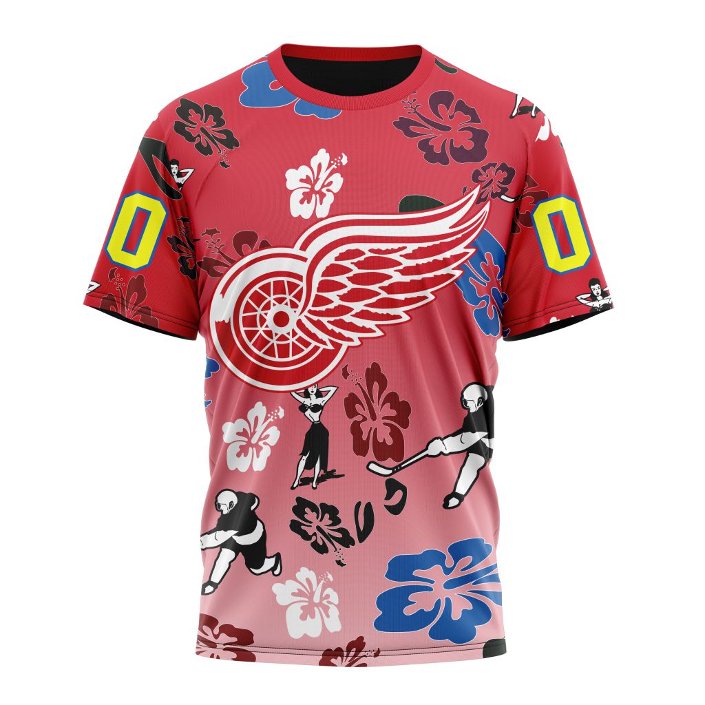 Detroit Red Wings feat Hawaii Design For Hawaiia Personalized Name And Number T-Shirt