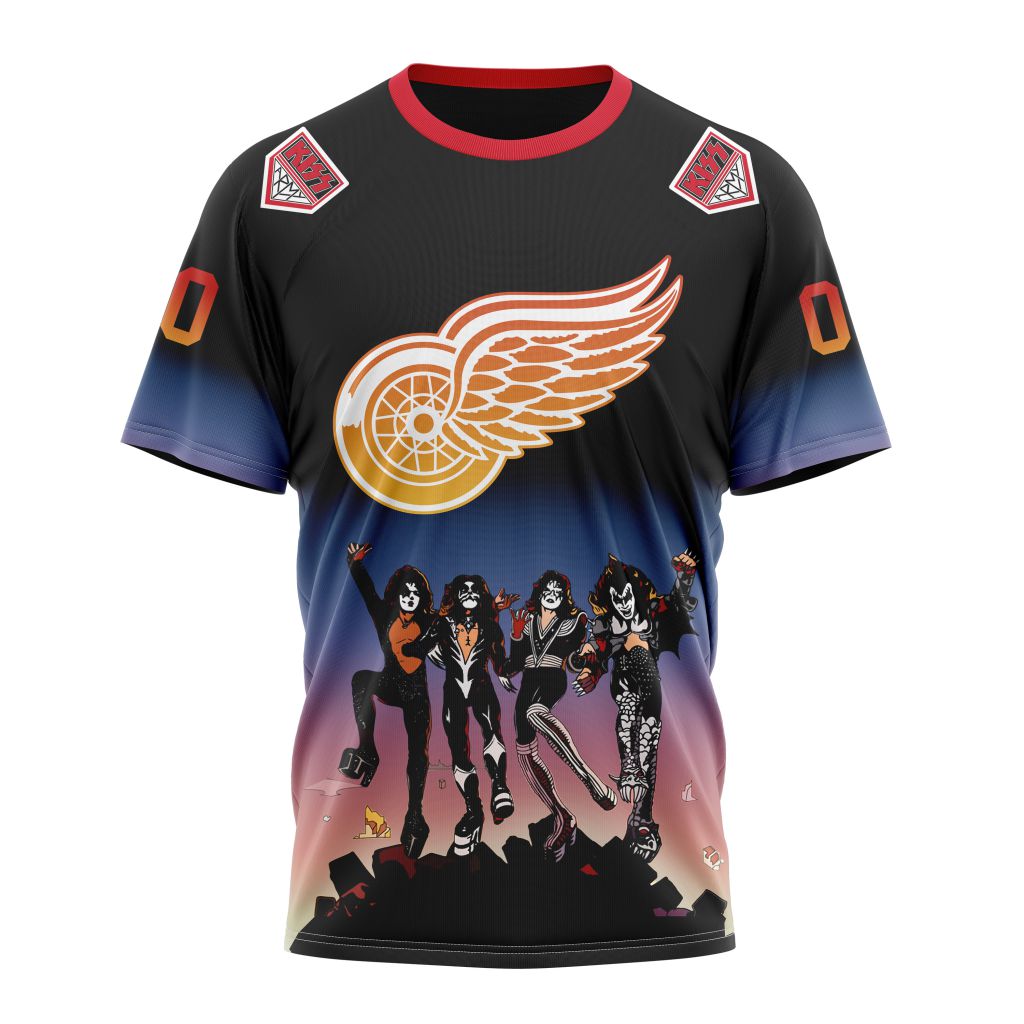 Detroit Red Wings feat KISS band Band Design Personalized Name And Number T-Shirt