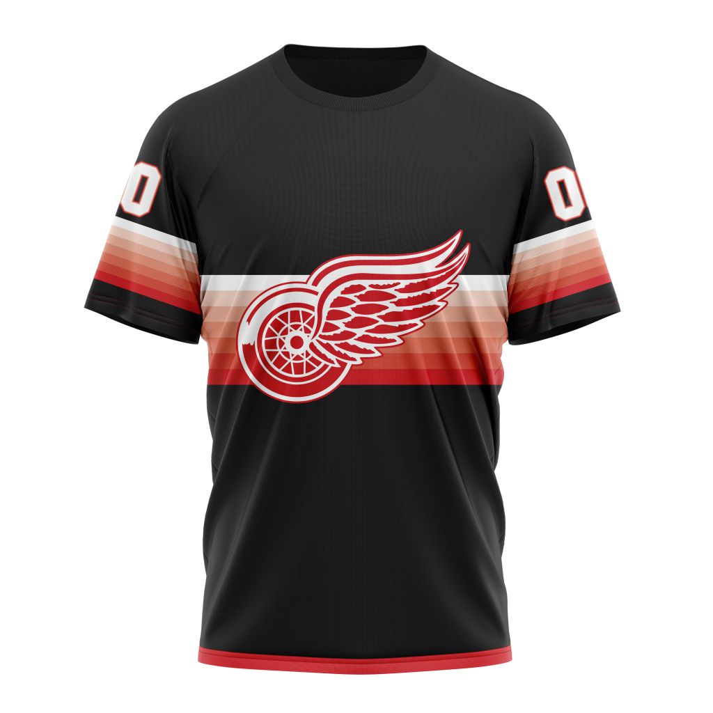 Detroit Red Wings Special Black And Gradient Design Personalized Name And Number T-Shirt