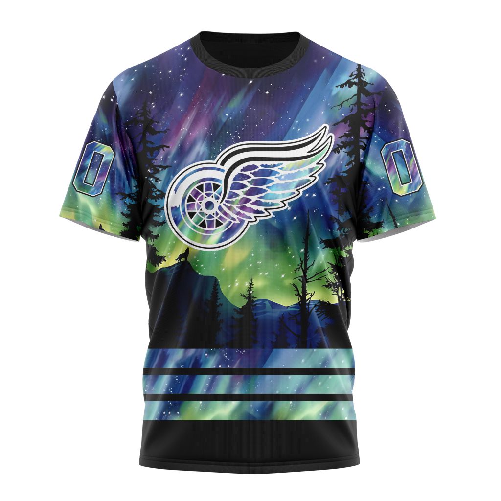 Detroit Red Wings With Northern Lights 01 Personalized Name And Number T-Shirt