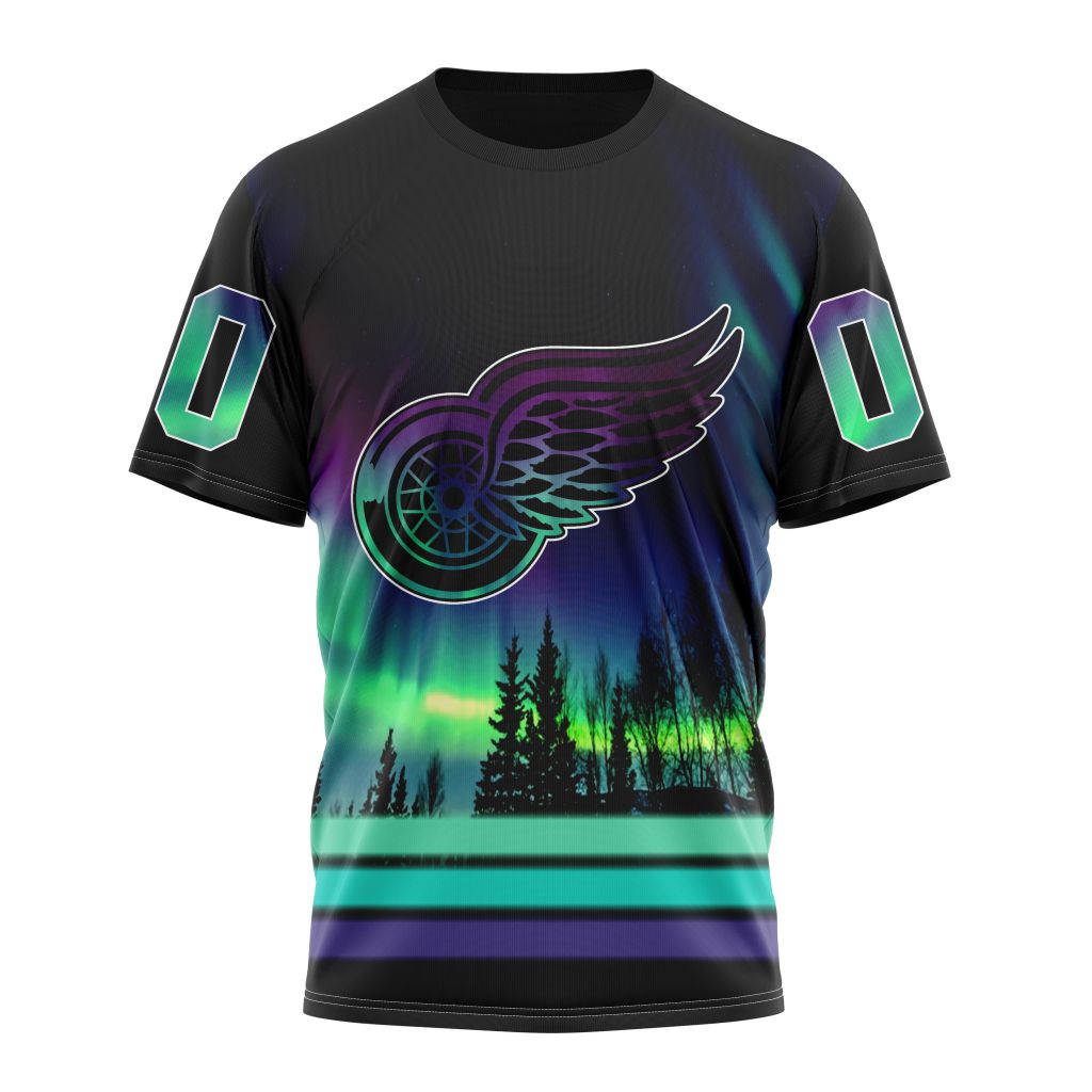 Detroit Red Wings With Northern Lights Personalized Name And Number T-Shirt