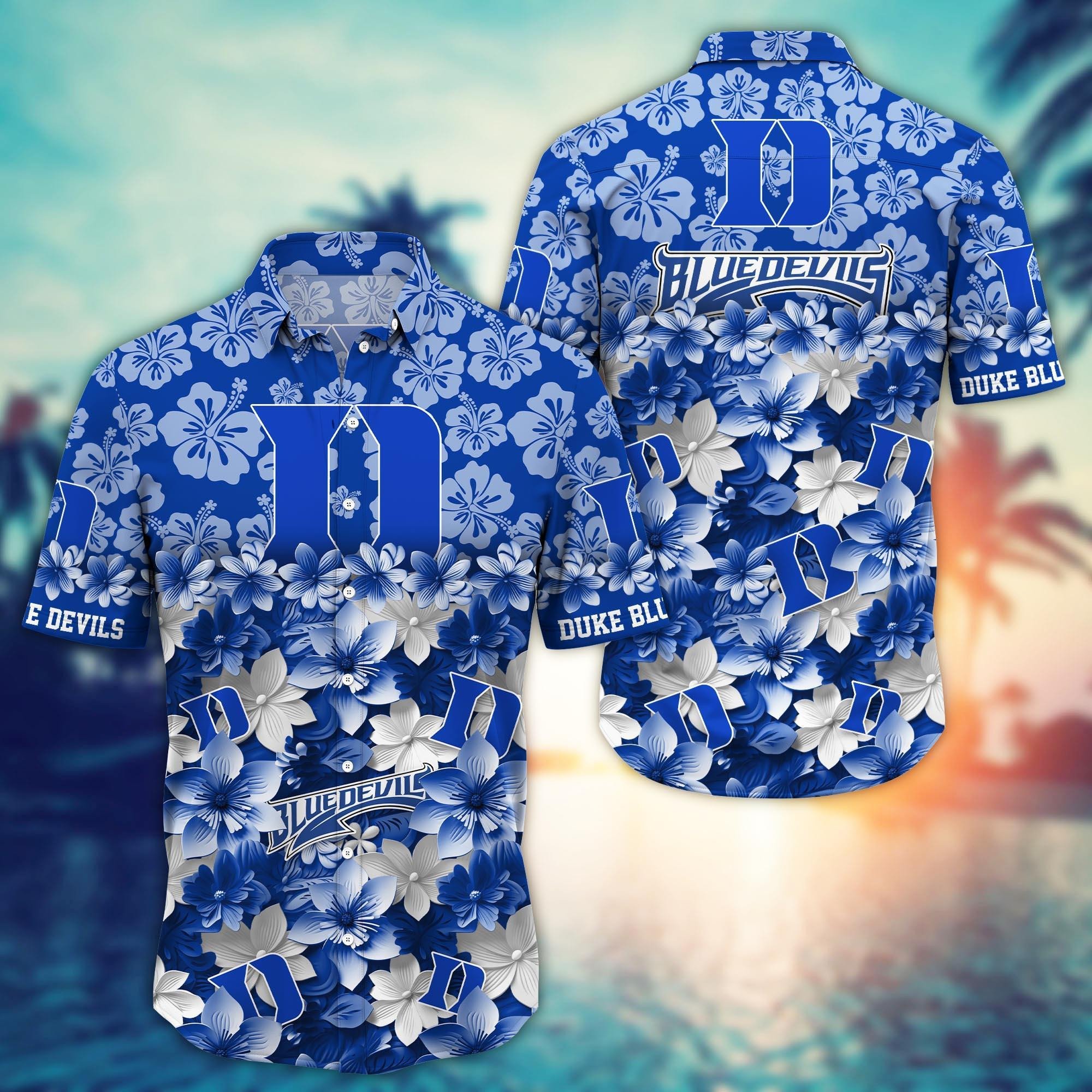 Duke Blue Devils Brightly Colored Flower Hawaiian Shirt