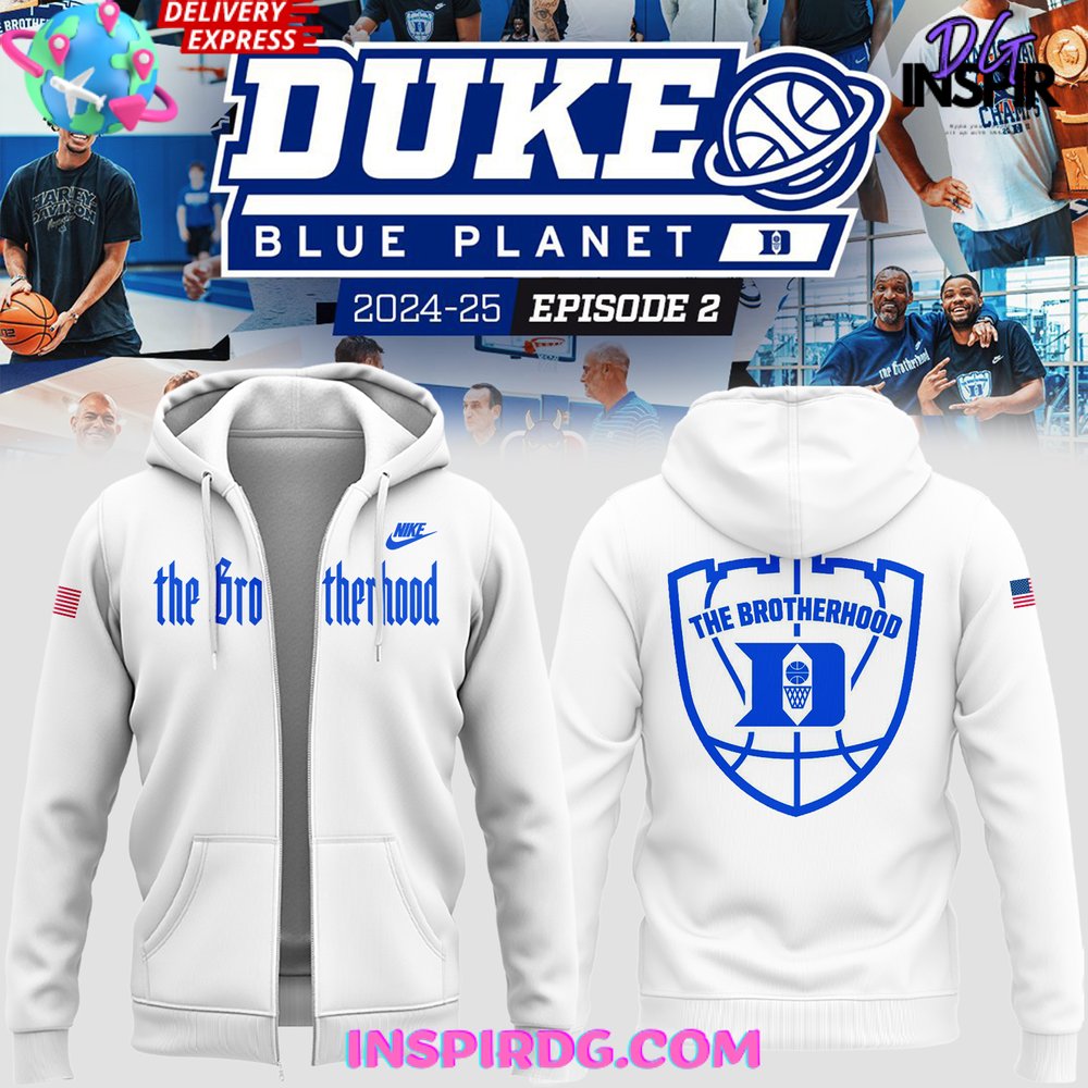 Duke Blue Planet The Brotherhood 2025 White Zip Sweatshirt Hoodie