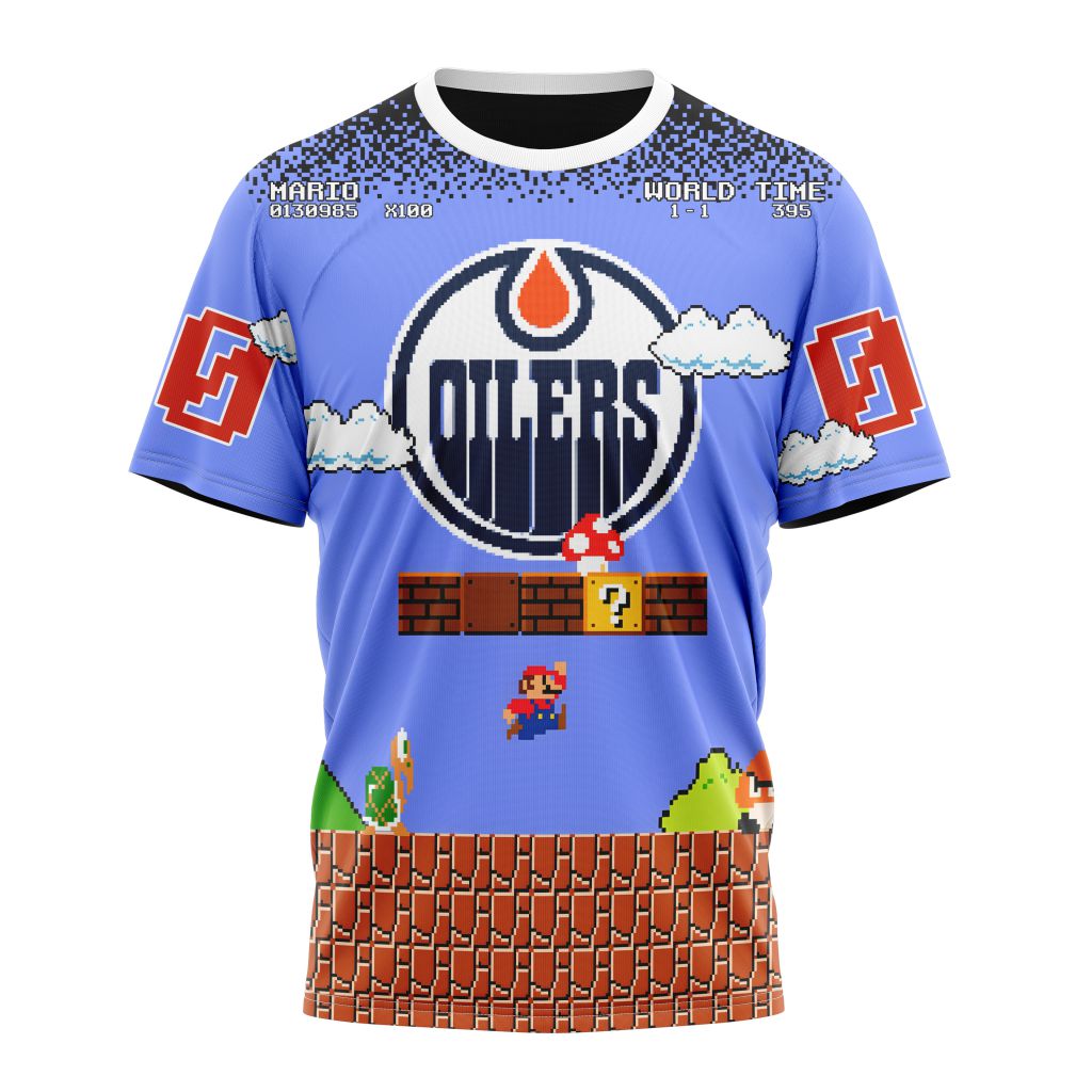 Edmonton Oilers Special Kits With Super Mario Game Design Personalized Name And Number T-Shirt