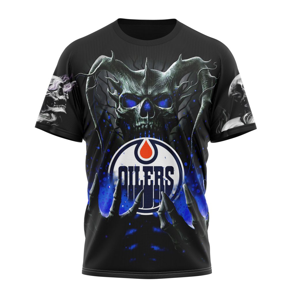 Edmonton Oilers Special Skull Art Design Personalized Name And Number T-Shirt