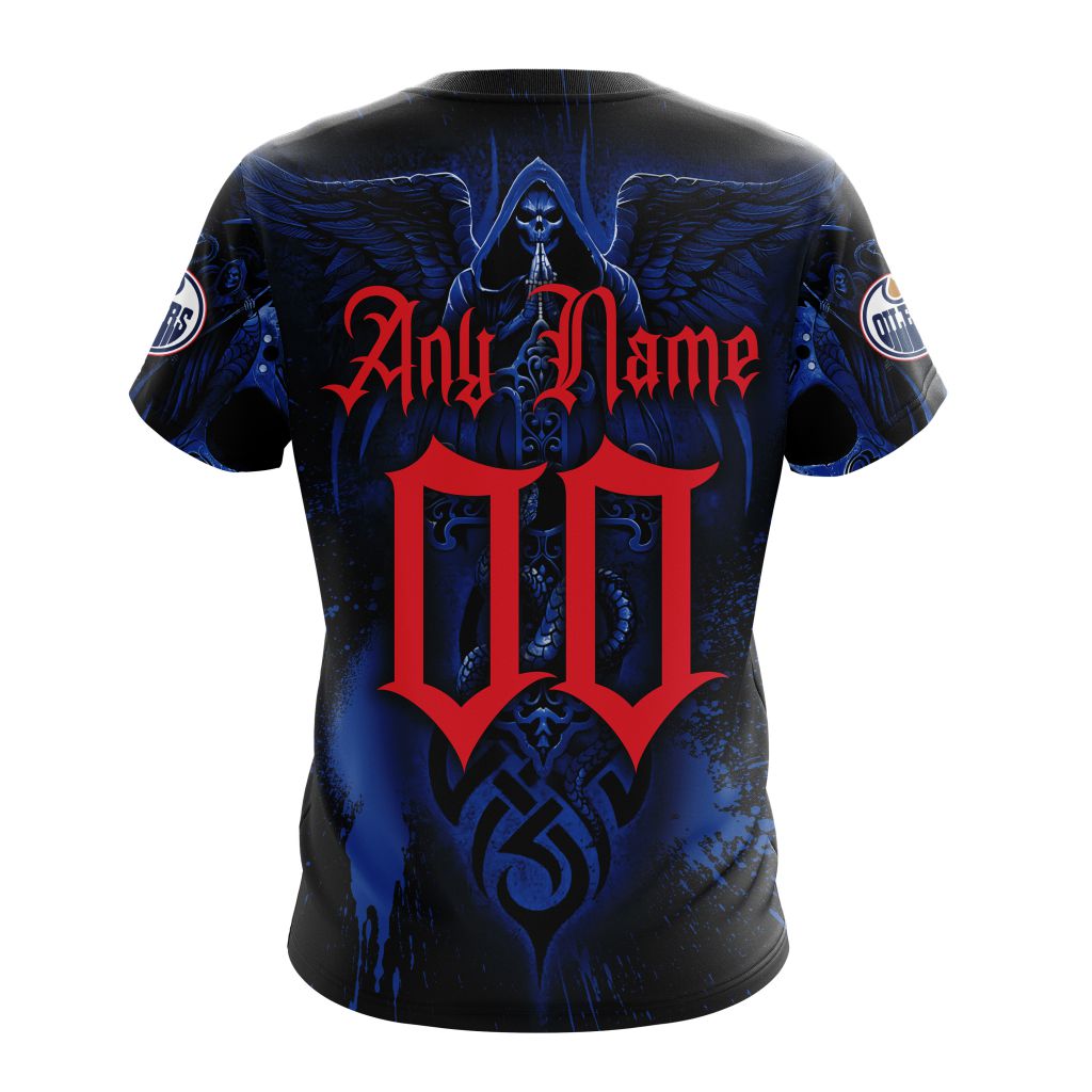 Edmonton Oilers With Skull Art Personalized Name And Number T-Shirt