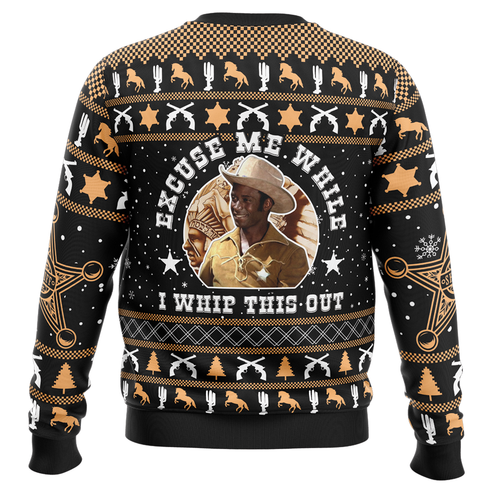 Buildercar – Excuse Me While I Whip This Out Blazing Saddles Ugly Christmas Sweater