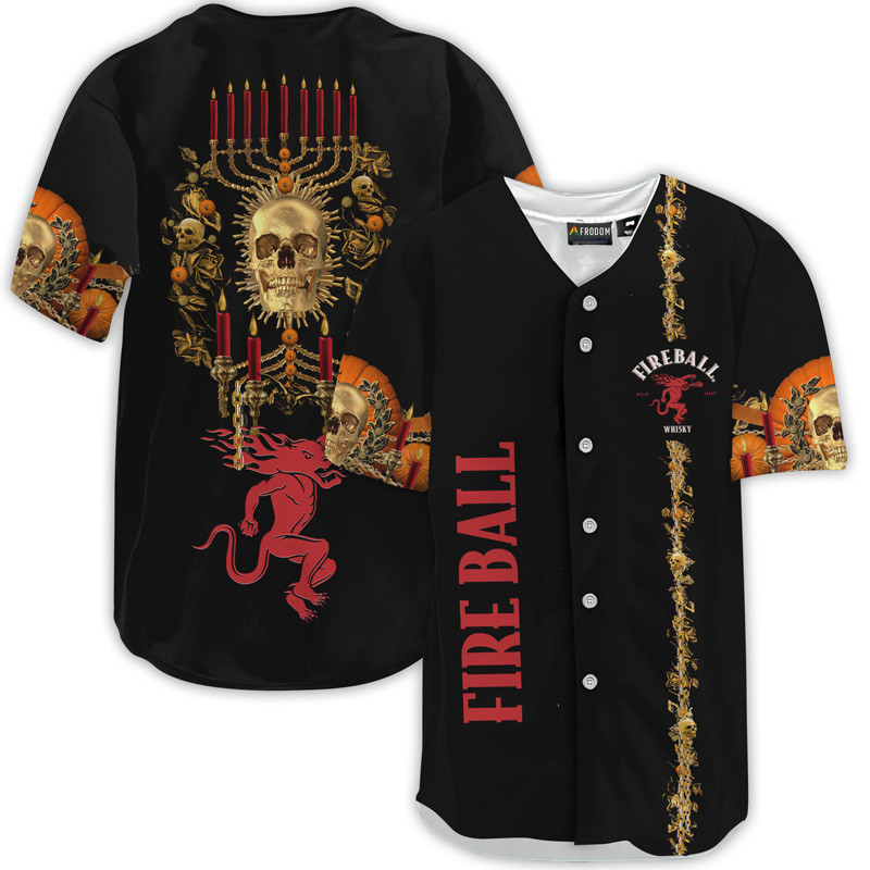 Fireball Whisky Golden Skull And Pumpkin Baseball Jersey