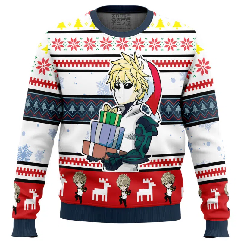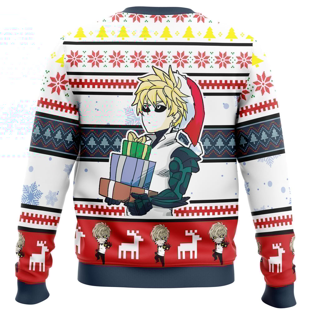 Buildercar – Genos One Punch Man Ugly Christmas Sweater Turn Heads This Holiday with Anime Ape’s Exclusive Ugly Christmas Sweater