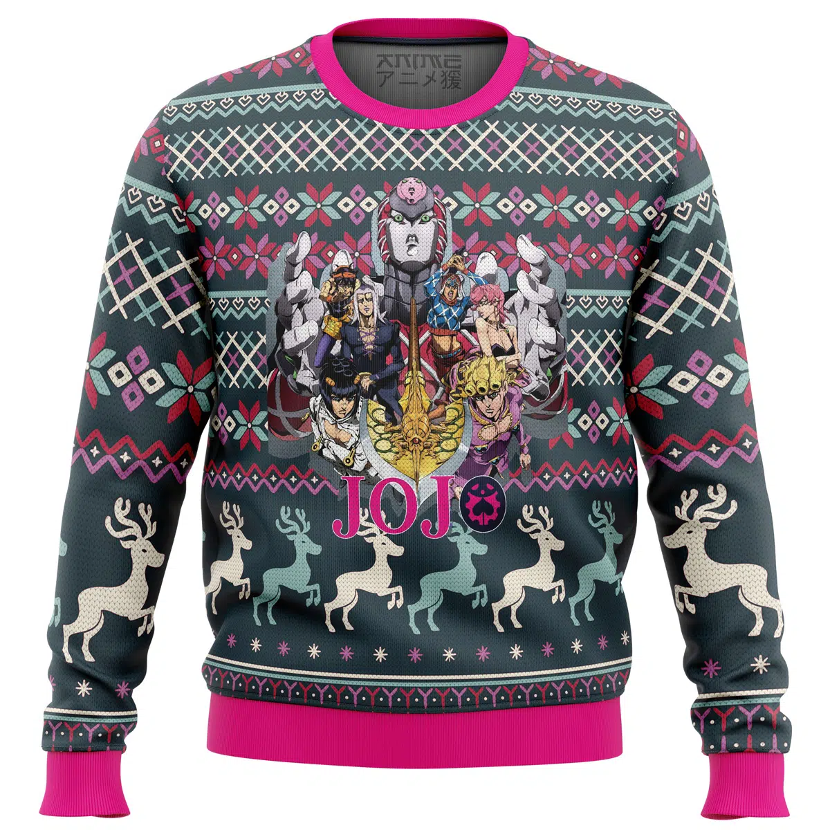 Buildercar – Golden Wind Jojo’s Bizarre Adventure Ugly Christmas Sweater Turn Heads This Holiday with Anime Ape’s Exclusive Ugly Christmas Sweater