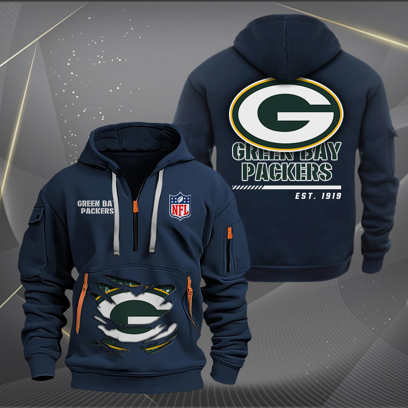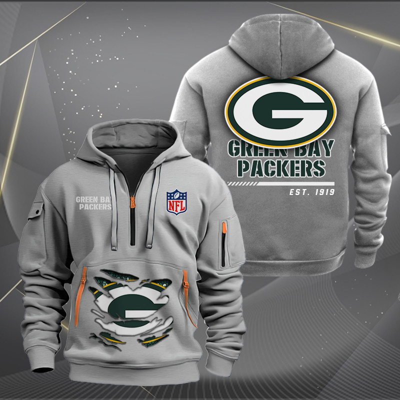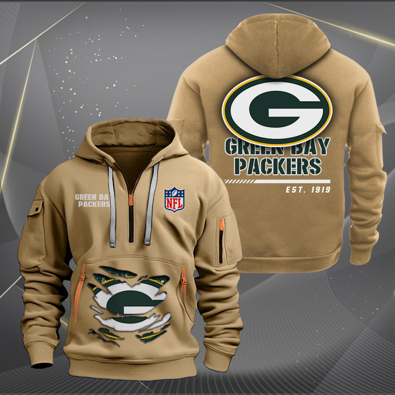 Green Bay Packers Monster Scratch 2 Logo NFL Quarter Zip Hoodie