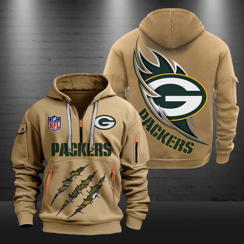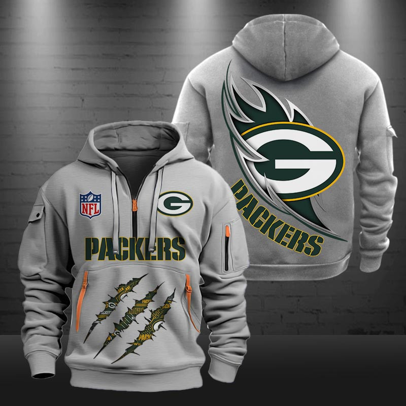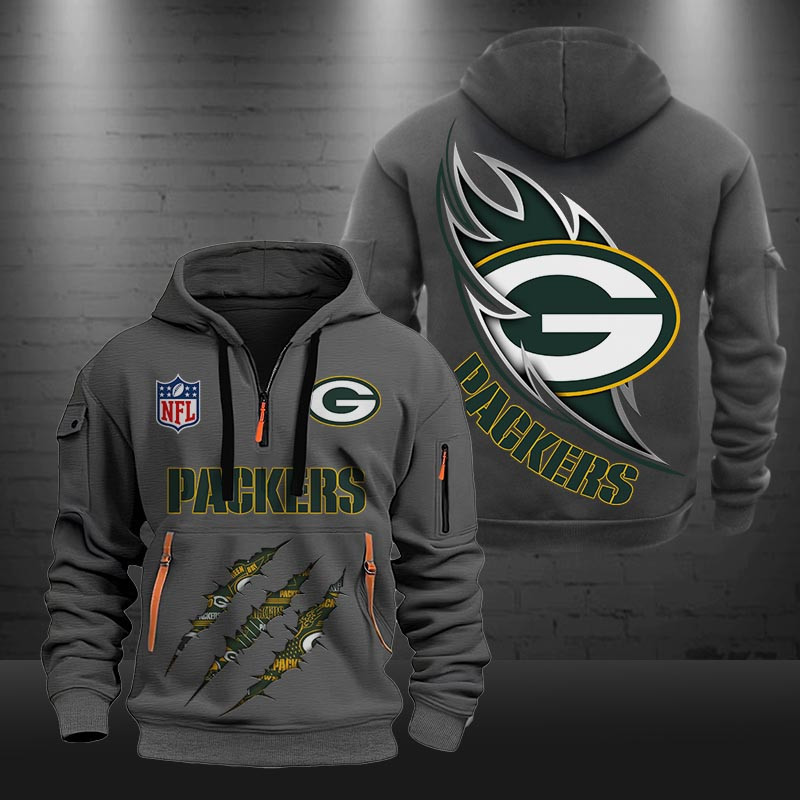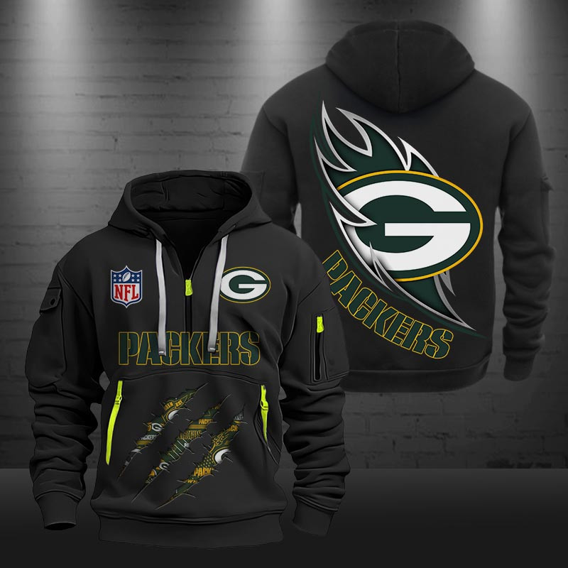 Green Bay Packers Monster Scratch Logo NFL Quarter Zip Hoodie