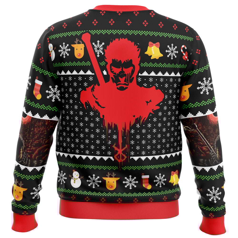 Buildercar – Guts Santa Claus Berserk Ugly Christmas Sweater Turn Heads This Holiday with Anime Ape’s Exclusive Ugly Christmas Sweater