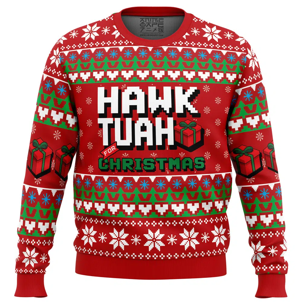 Buildercar – Hawk Tuah For Christmas Ugly Christmas Sweater Turn Heads This Holiday with Anime Ape’s Exclusive Ugly Christmas Sweater