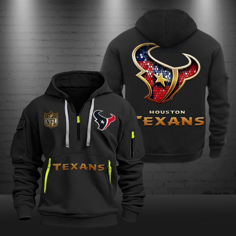 Houston Texans Golden Logo NFL Quarter Zip Hoodie