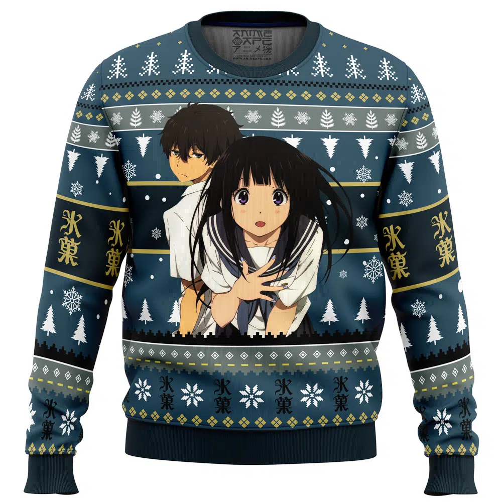 Buildercar – Houtarou And Eru Hyouka Ugly Christmas Sweater Turn Heads This Holiday with Anime Ape’s Exclusive Ugly Christmas Sweater