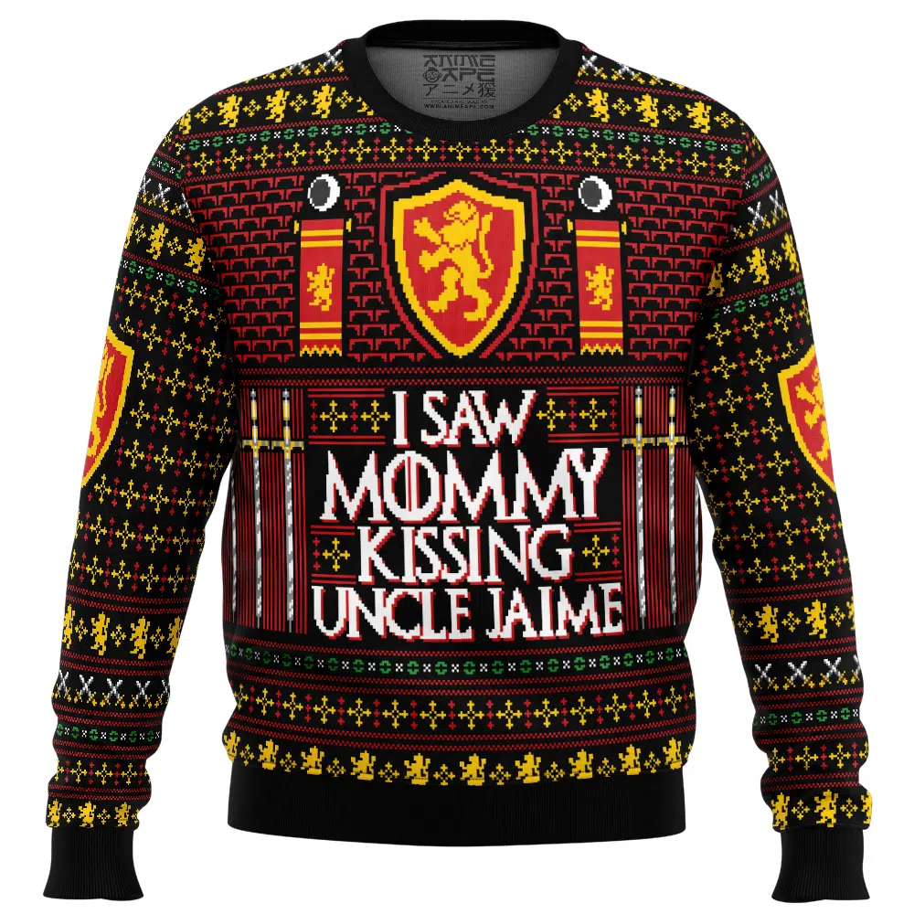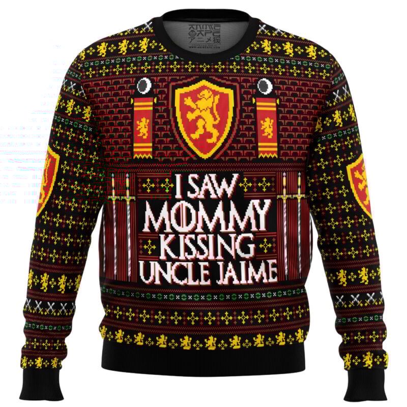 Buildercar – I Saw Mommy Kissing Uncle Jaime Ugly Christmas Sweater Turn Heads This Holiday with Anime Ape’s Exclusive Ugly Christmas Sweater