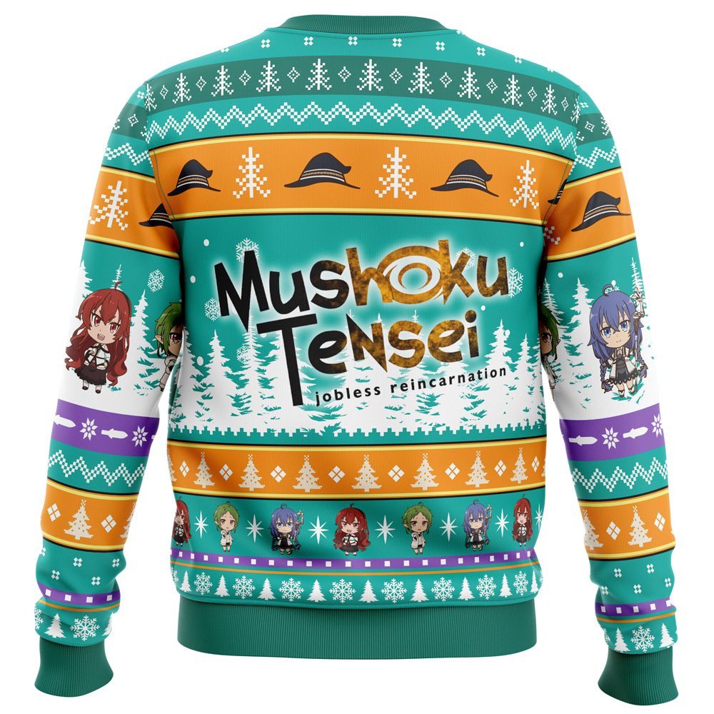 Buildercar – If I Only Tried Harder Mushoku Tensei Jobless Reincarnation Ugly Christmas Sweater Turn Heads This Holiday with Anime Ape’s Exclusive Ugly Christmas Sweater