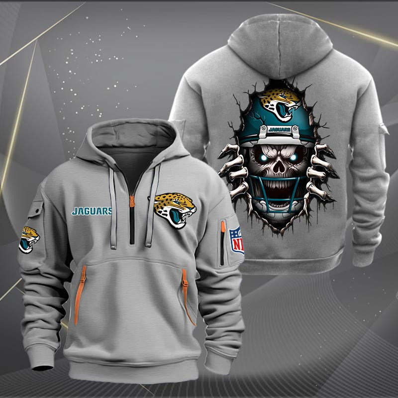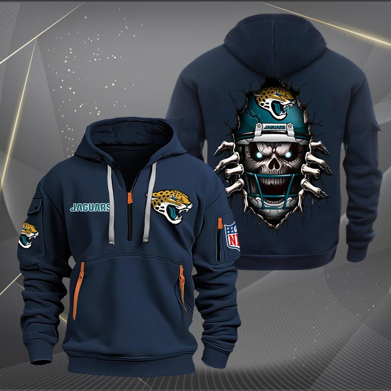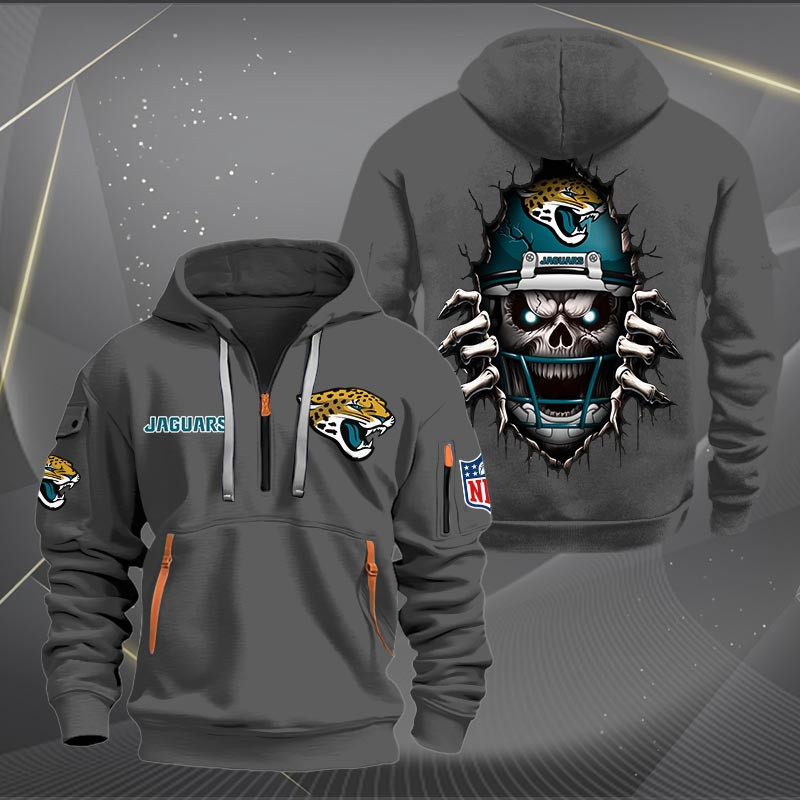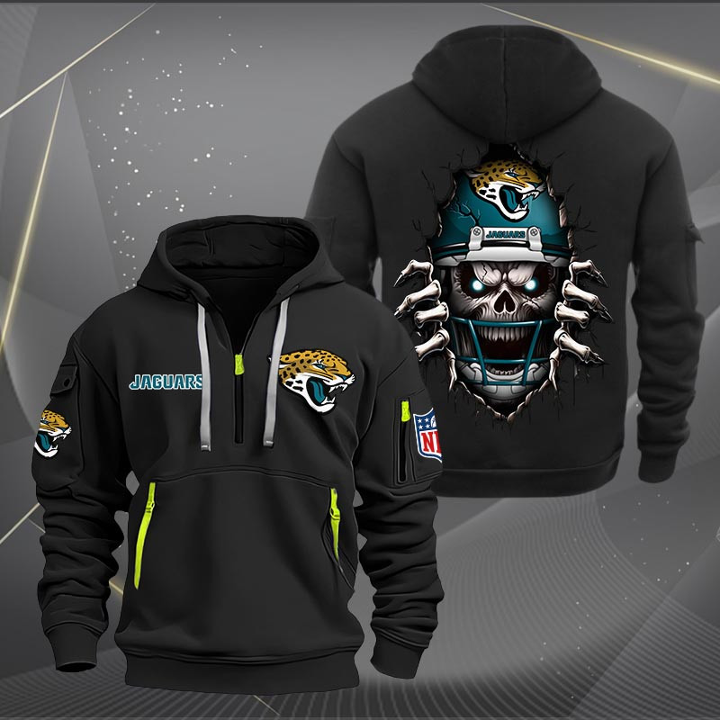 Jacksonville Jaguars Football Player Skull Quarter Zip Hoodie