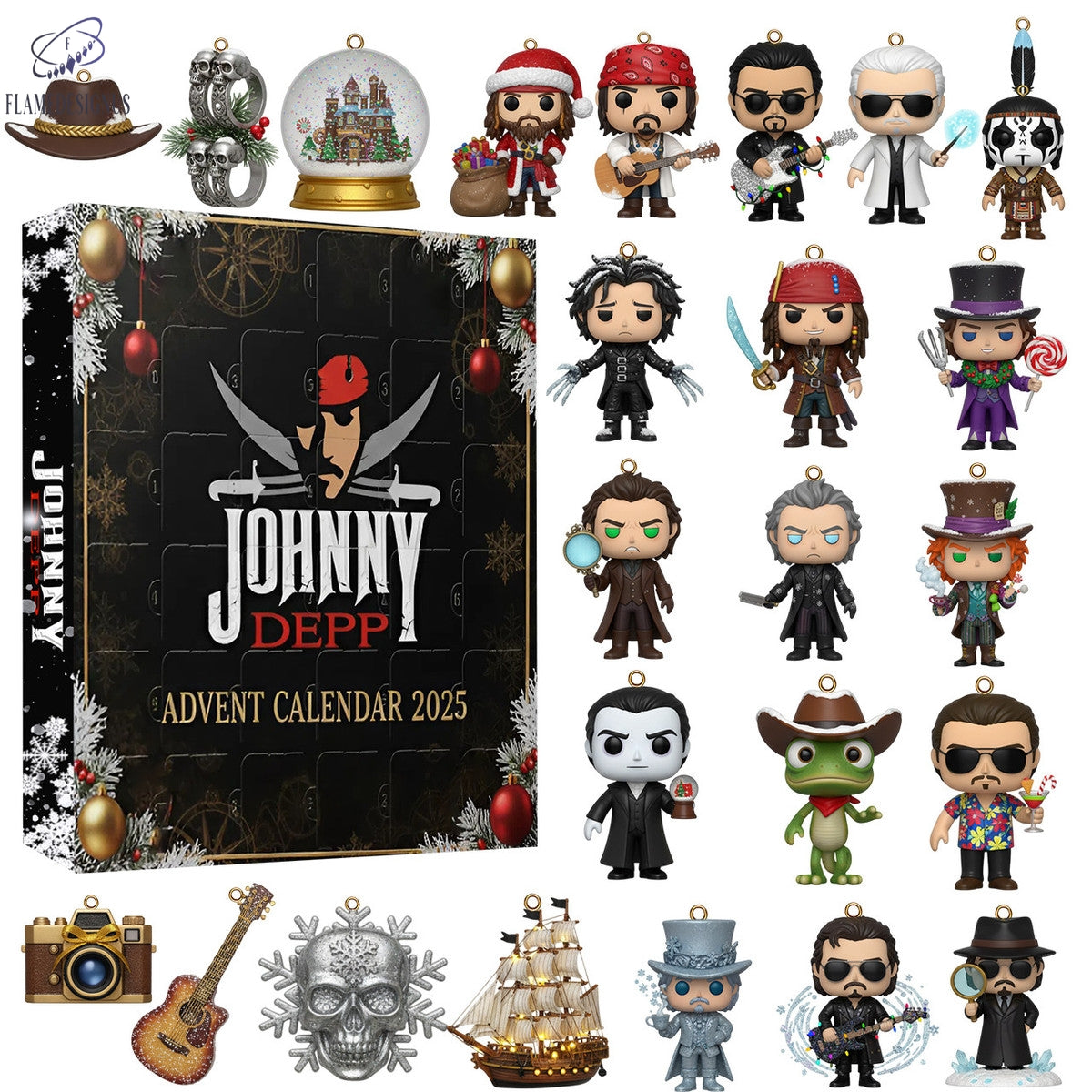 Buildercar – Johnny Depp Advent Calendar 2025 -2D Acrylic 🎄Celebrate the magic of the holiday season with this Limited Edition Advent Calendar, designed for fans and collectors alike. A new mini 2D ornament—each crafted with playful detail and festive charm. From iconic moments to joyful surprises, it’s the perfect way to count down to Christmas in style. ✨ Product Hightlights Collectible Surprises – Open a new door each day to uncover a unique 2D ornament inspired by beloved themes, characters, and symbols of celebration. Premium Craftsmanship – Made from durable materials with vivid colors and intricate detailing to last for years. Display Anywhere – Each ornament comes with a hanging loop, ideal for your Christmas tree, desk, or festive decor. Perfect Gift Choice – A thoughtful and exciting holiday countdown for kids, collectors, and anyone who loves the spirit of Christmas. It’s more than a countdown—it’s a daily moment of joy, creating unforgettable memories all season long.