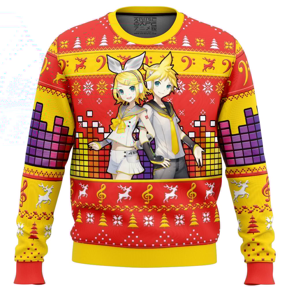 Buildercar – Kagamine Rin Len Ugly Christmas Sweater Turn Heads This Holiday with Anime Ape’s Exclusive Ugly Christmas Sweater