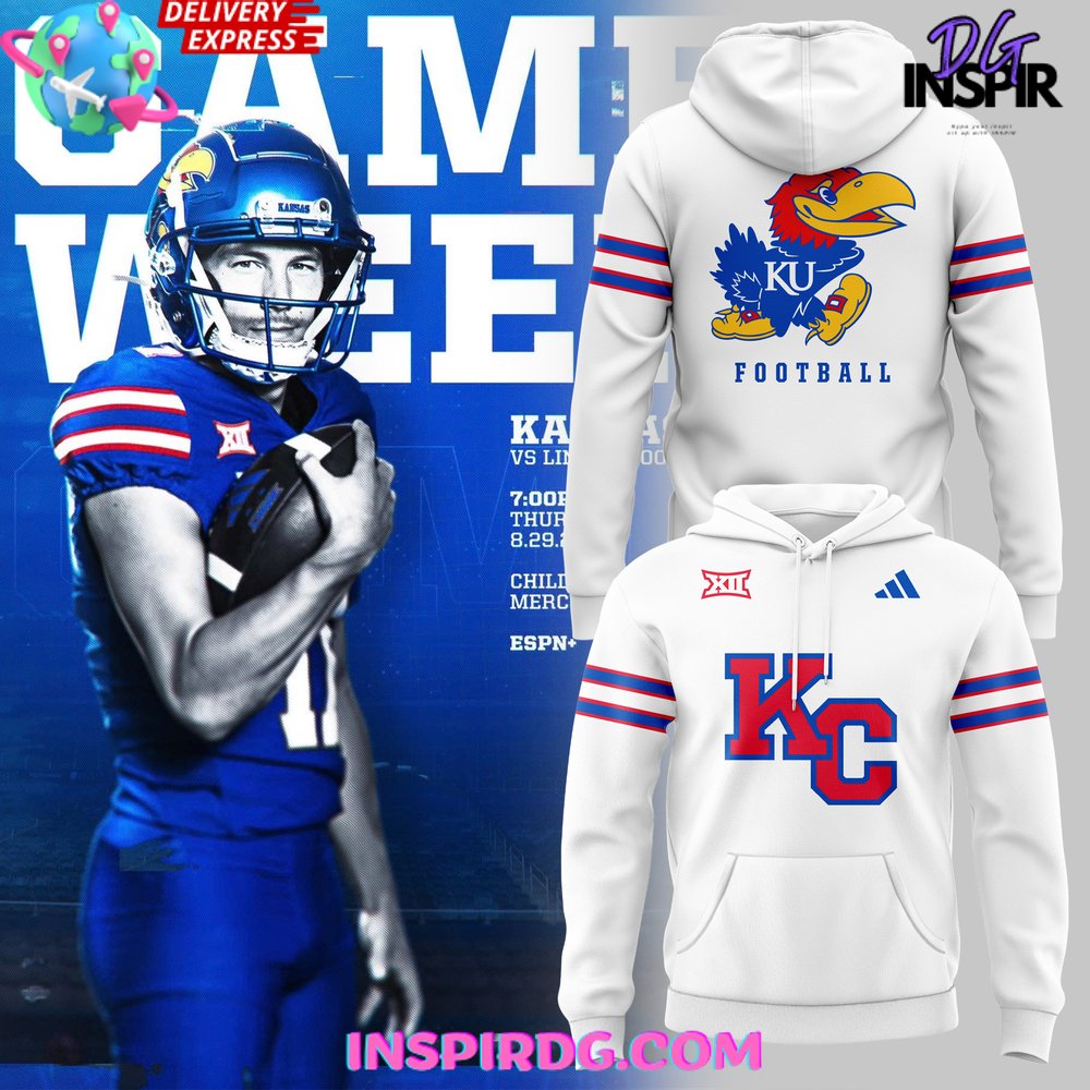 Kansas Jayhawks Football KC 2025 White Sweatshirt Hoodie