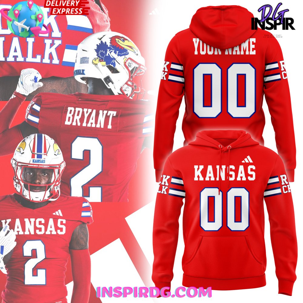 Kansas Jayhawks Rock Chalk Football 2025 Custom Name Number Sweatshirt Hoodie