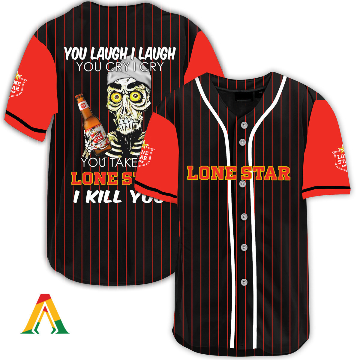 Laugh Cry Take My Lone Star Beer I Kill You Baseball Jersey