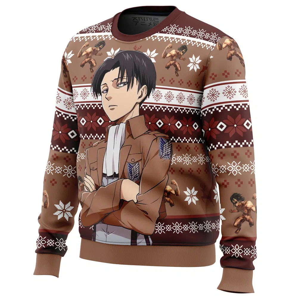 Buildercar – Levi Ackerman Attack on Titan Ugly Christmas Sweater Turn Heads This Holiday with Anime Ape’s Exclusive Ugly Christmas Sweater