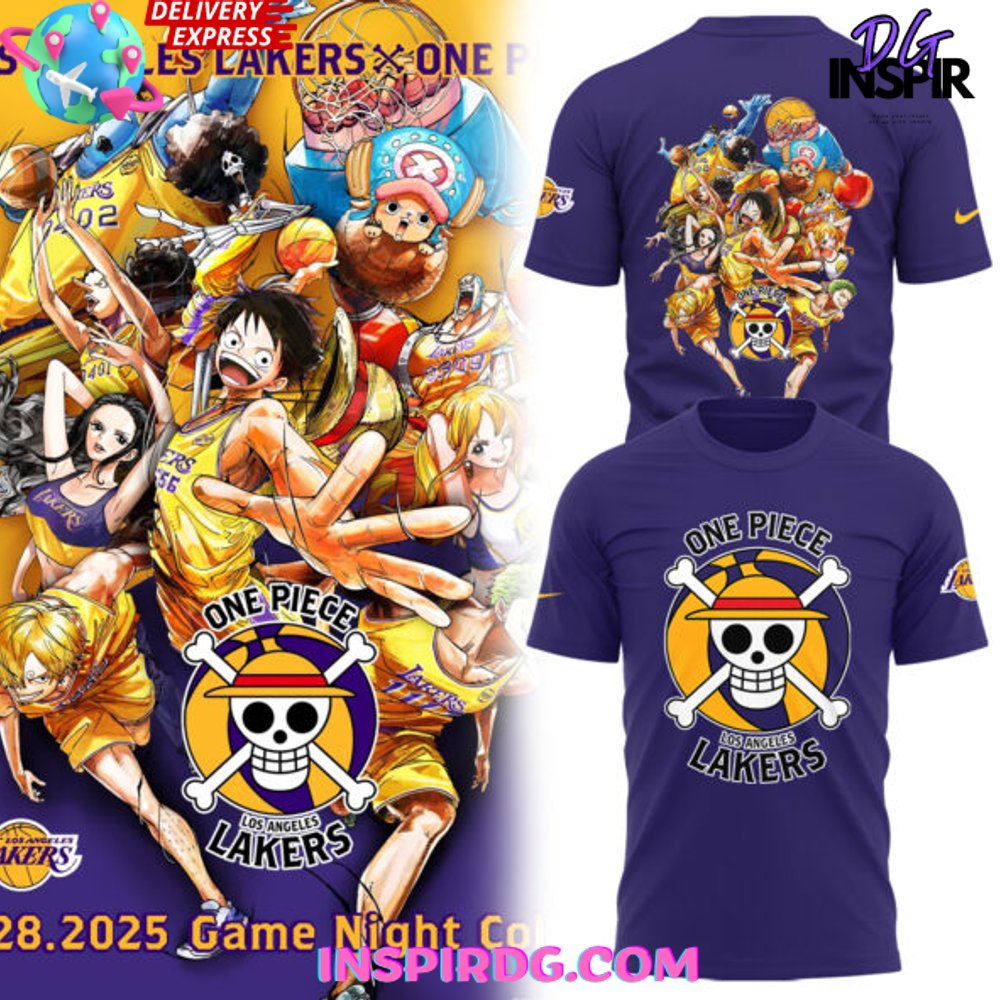 Los Angeles Lakers One Piece Night 2025 Purple NHL T-shirt