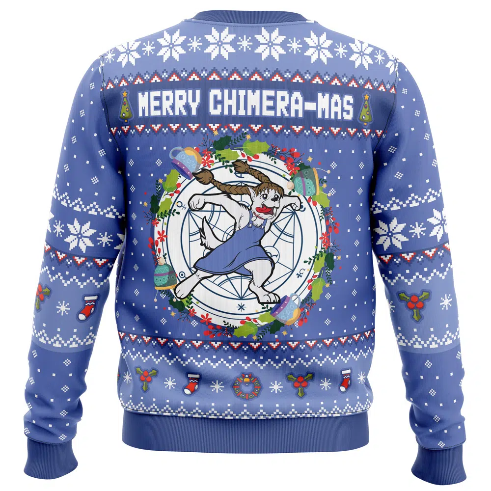 Buildercar – Merry Chimera-mas Fullmetal Alchemist Christmas Sweater Turn Heads This Holiday with Anime Ape’s Exclusive Ugly Christmas Sweater