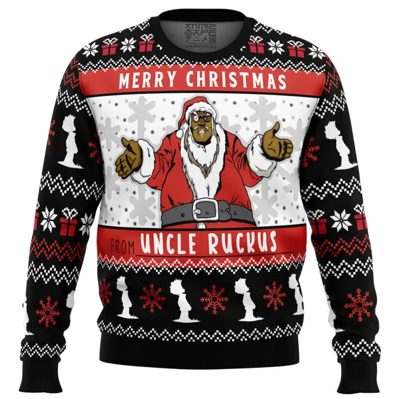 Buildercar – Merry Christmas From Uncle Ruckus Ugly Christmas Sweater Turn Heads This Holiday with Anime Ape’s Exclusive Ugly Christmas Sweater